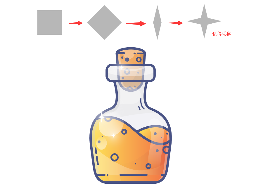 步骤3:为瓶身添加一些小元素,描边大小为6px,注意图层的顺序,如图分布。