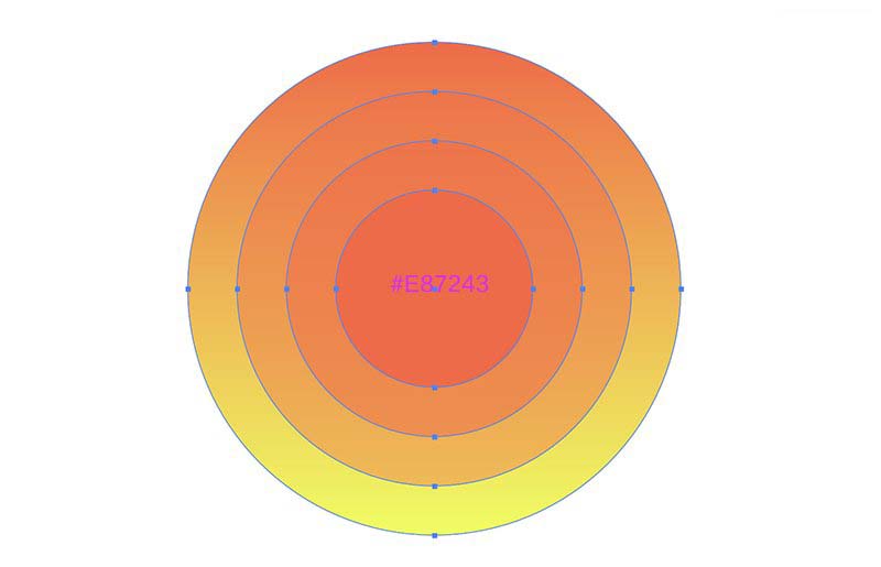 第四个个小圆192 x 192px(#E87243)作为太阳。然后选中所有形状居中对齐,编组(Control+G)。