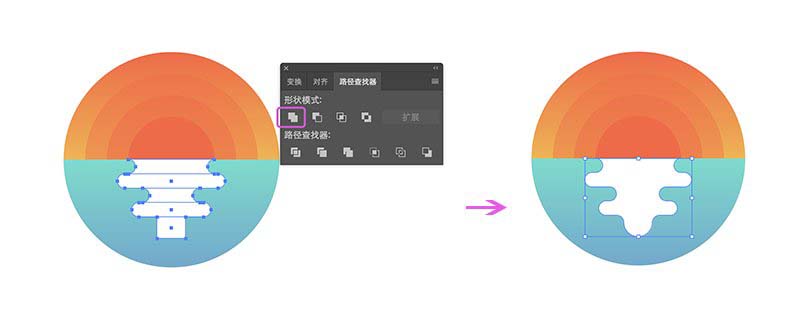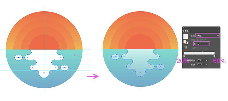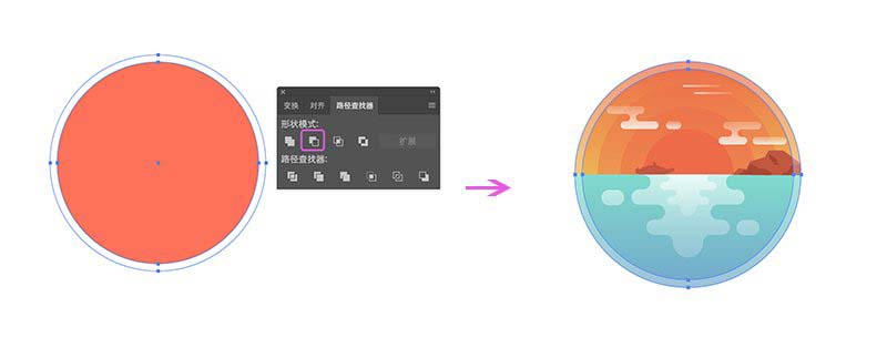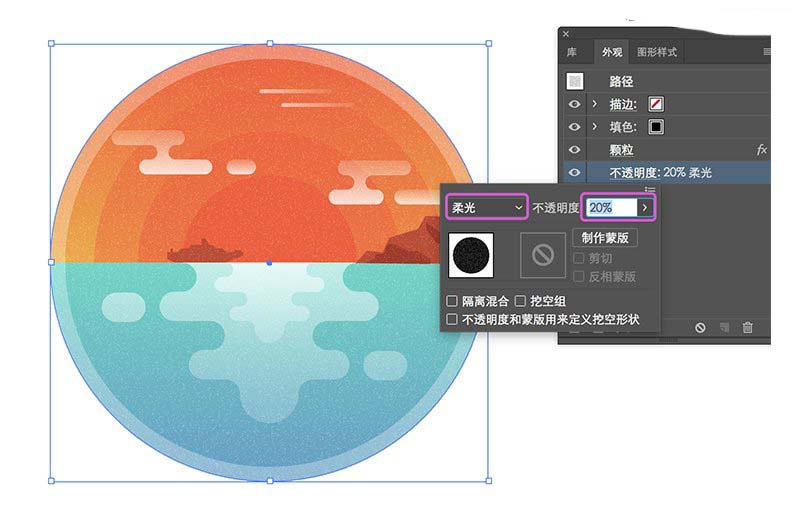 最后检查下我们完成的插图,发现纹理涂层会露到背景(大圆)外面,解决这个问题的方法嘛,本文中已有答案。