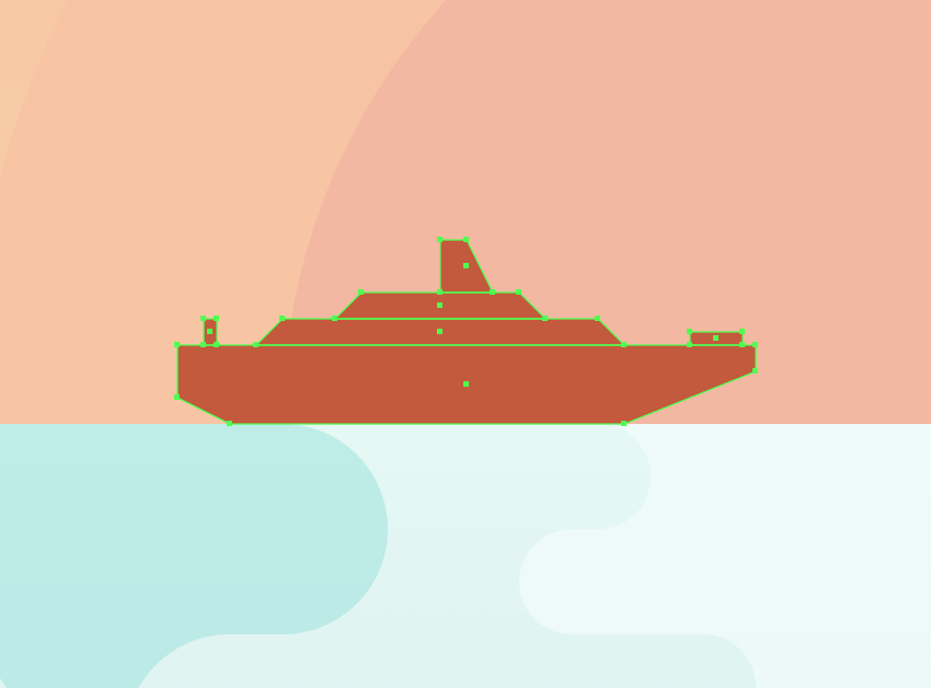 创建小型游轮:使用矩形形状工具来绘制,色值为:#C4583B,通过移动锚点调整形状。完成后,编组(Control+G)。