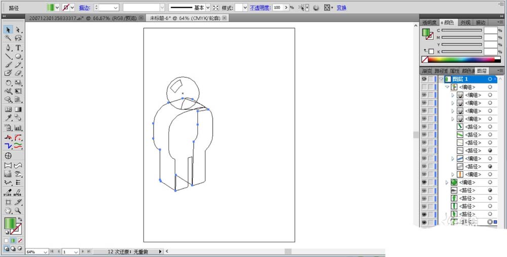 2、我们进一步绘制出人腿部的细节,完整的呈现这个人的动作路径。