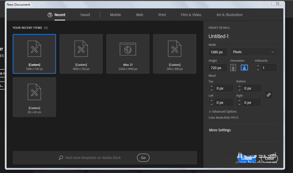 1、新建一个1280*720,颜色模式RGB的文档。