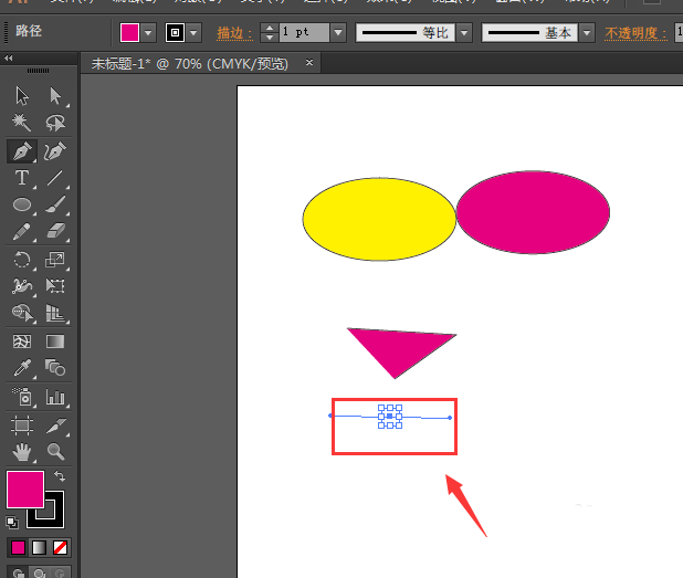 1、如图,当使用钢笔工具,在画布上点击一下的时候,就会出现一个锚点
