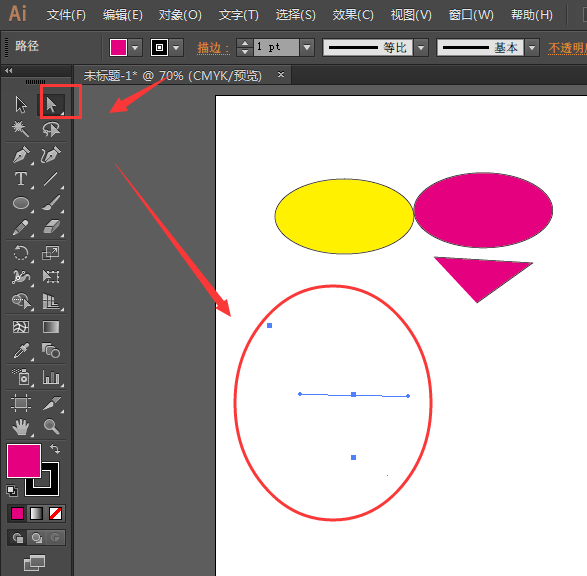 2、整张状态下,我们无法看到游离点,当我们使用白色箭头的时候才能选中才能看出来