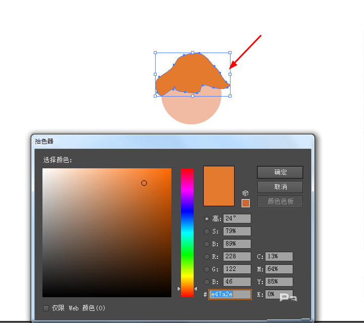 7、选择钢笔工具,勾出如下的图形,并填充颜色,如图所示