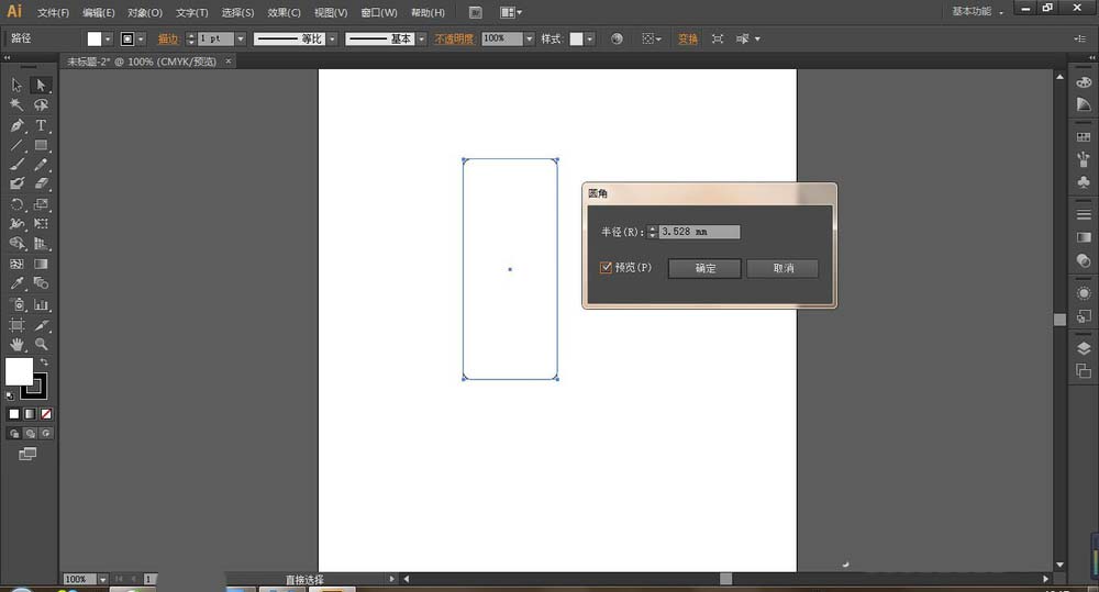 3、选择矩形,执行效果-风格化-圆角,设置圆角半径为:3以上,看实际图形大小。