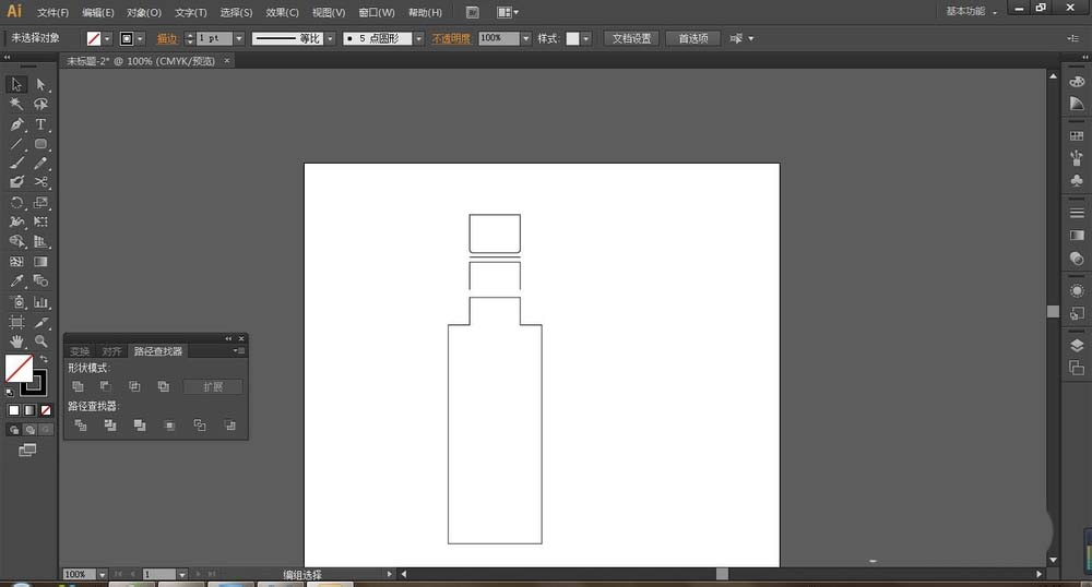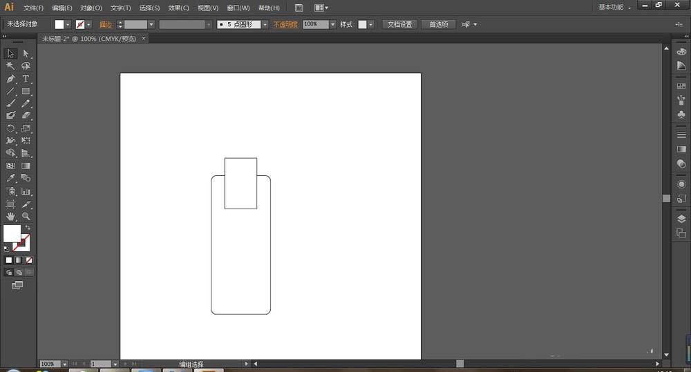 6、再将选择矩形工具绘制瓶口大小的矩形,并用剪刀工具剪去底部,再选择直线工具绘制直线,再次选择矩形工具绘制矩形与圆角矩形进行合并,这些图形比较简单,所以一般都能画出来。