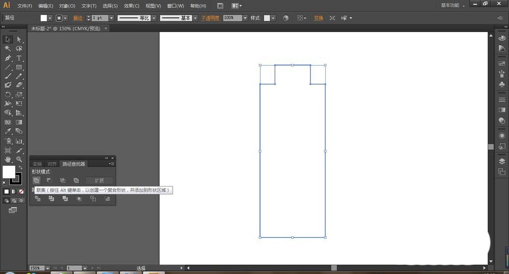 5、选择两个图形,执行路径查找器,选择合并。