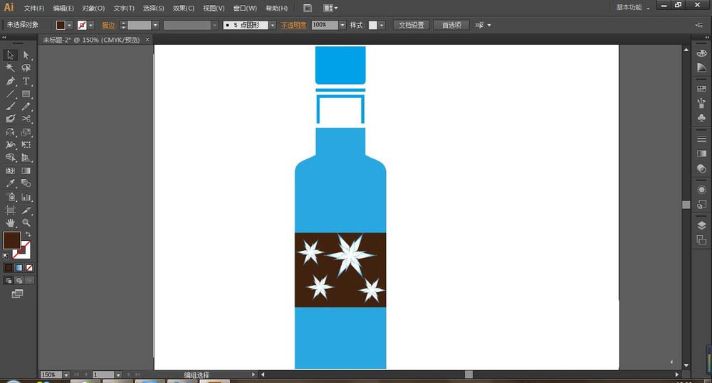 9、选择矩形工具,绘制一矩形放于瓶身中间,并填充咖啡色,再加入AI自带的雪花图案,调整图案大小和位置,最终效果如图: