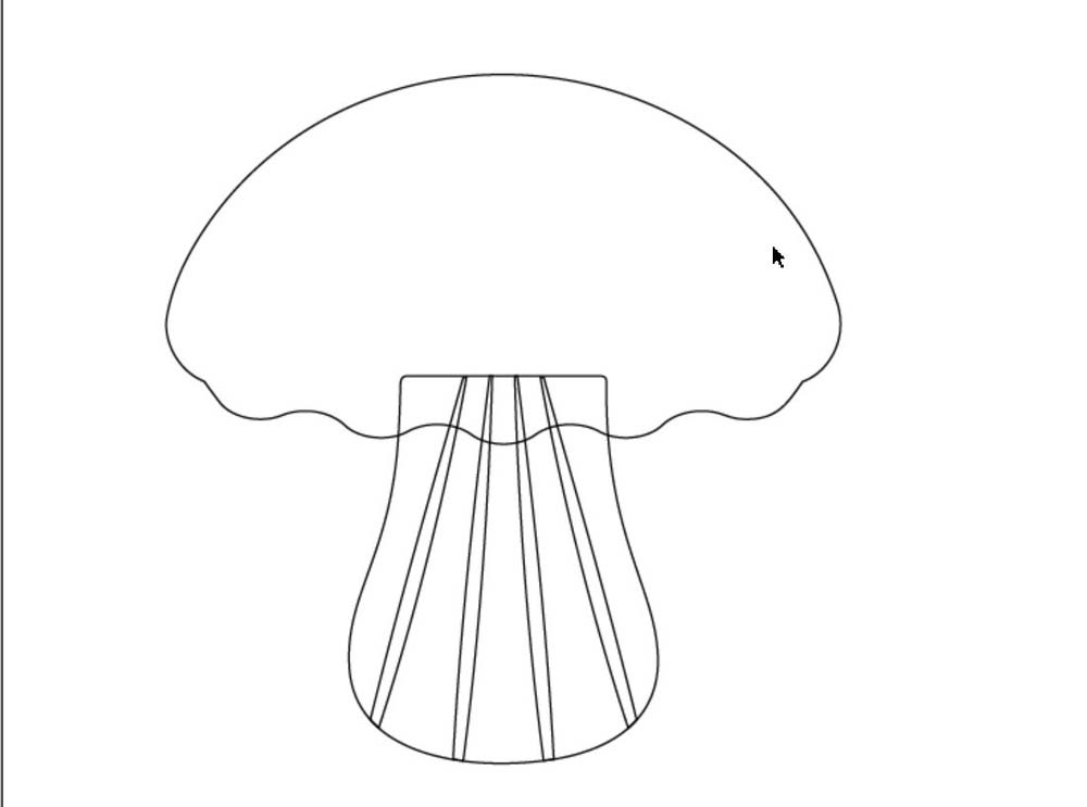 1、先用钢笔画出一个蘑菇的下端支撑架,上面的细节就是一条条的光线暗区纹理。