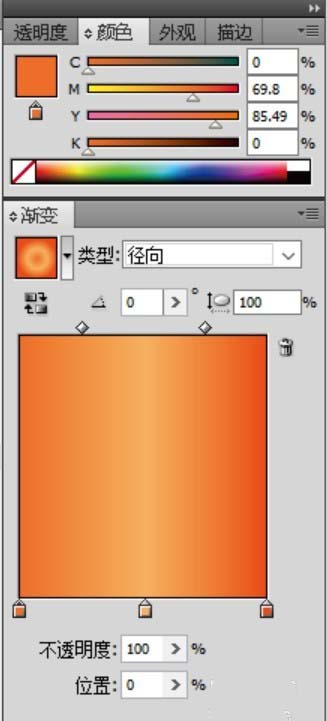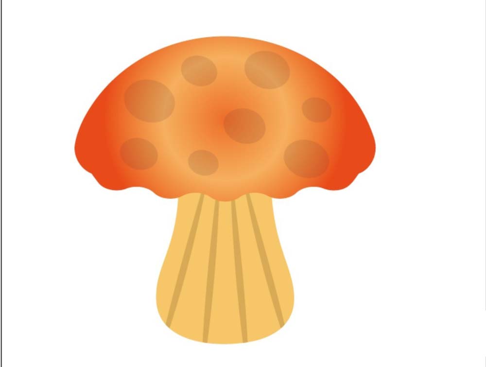 6、我们也可以调出一种橙红色的渐变色来填充这个蘑菇的伞盖,把上面的暗色调用正片叠底的方式混合,从而获得一种更具材质感的小蘑菇。卡通蘑菇矢量图设计的方法是不是很多?