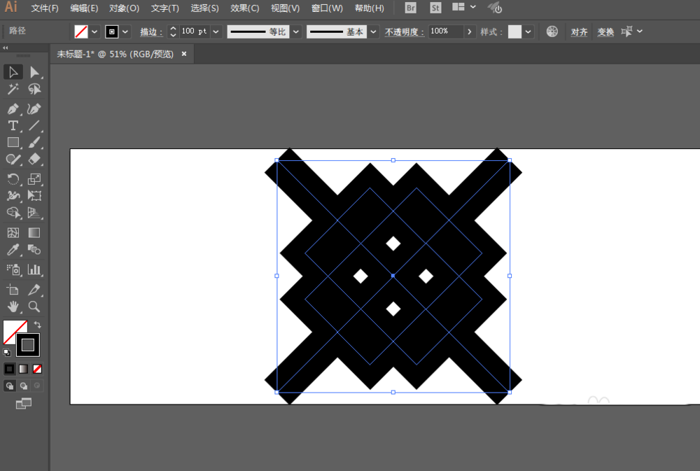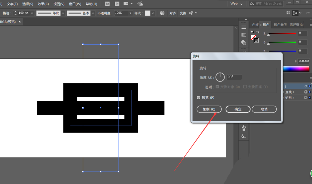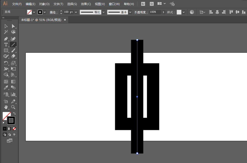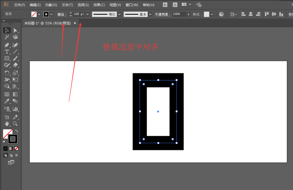 2、用矩形工具绘制长方形,使描边居中对齐,增加描边大小。