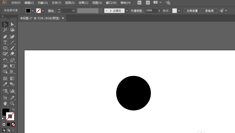 1、新建一个文档,用椭圆工具绘制一个圆形,填充任意颜色,描边颜色不选择。