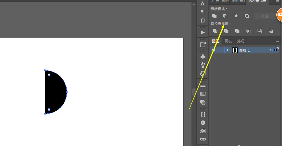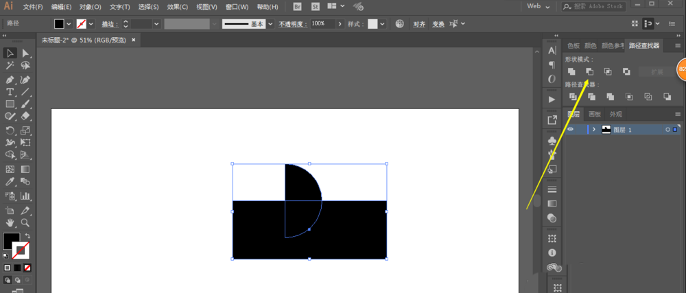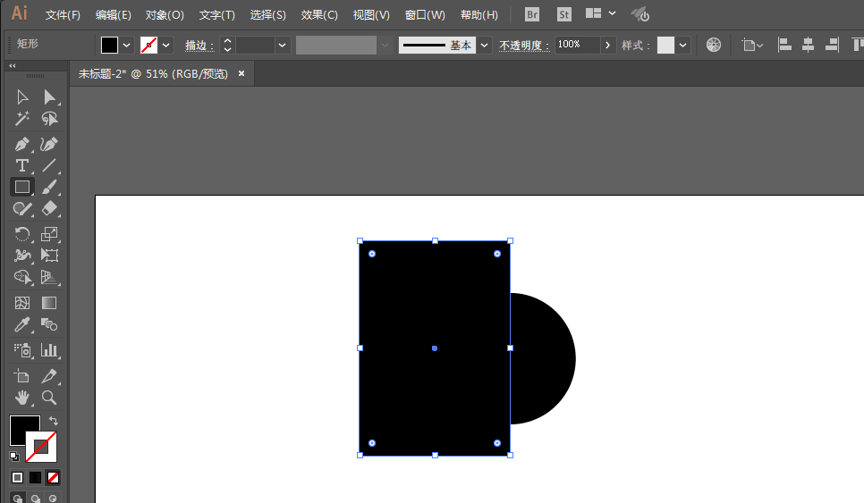 2、用矩形工具绘制长方形遮住圆形半边,然后减去顶层。
