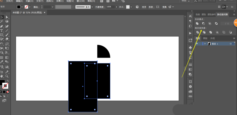 4、绘制两个矩形一大一小,大的遮住一半小的,减去顶层。