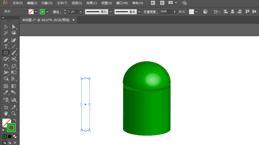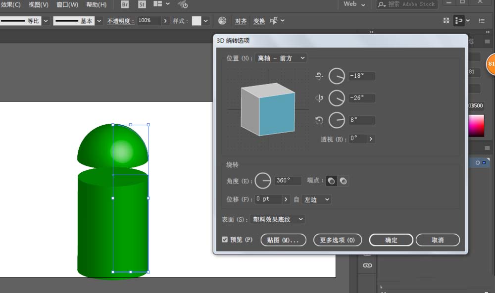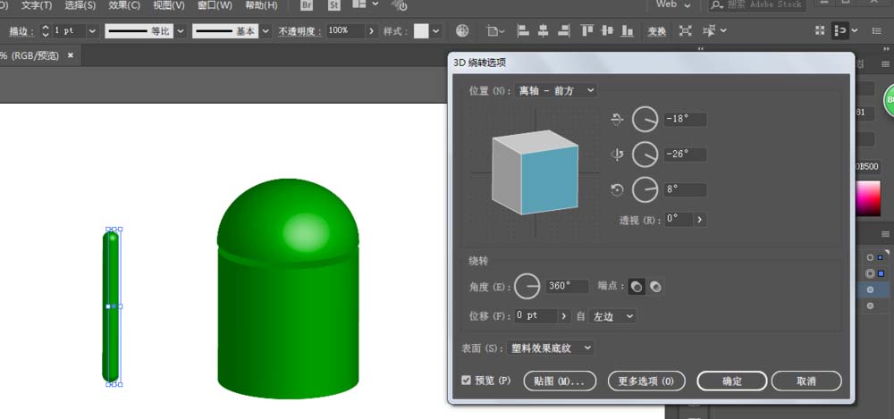7、绘制圆角矩形,用剪刀工具减去一半,进行3D绕转。