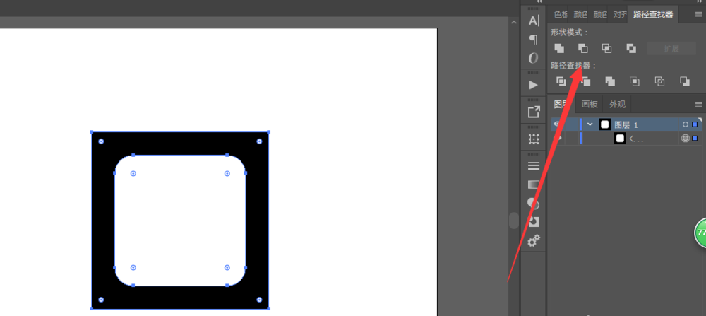2、复制一个正方形,并且缩小形状。外围的变成圆角矩形,然后全选减去顶层。