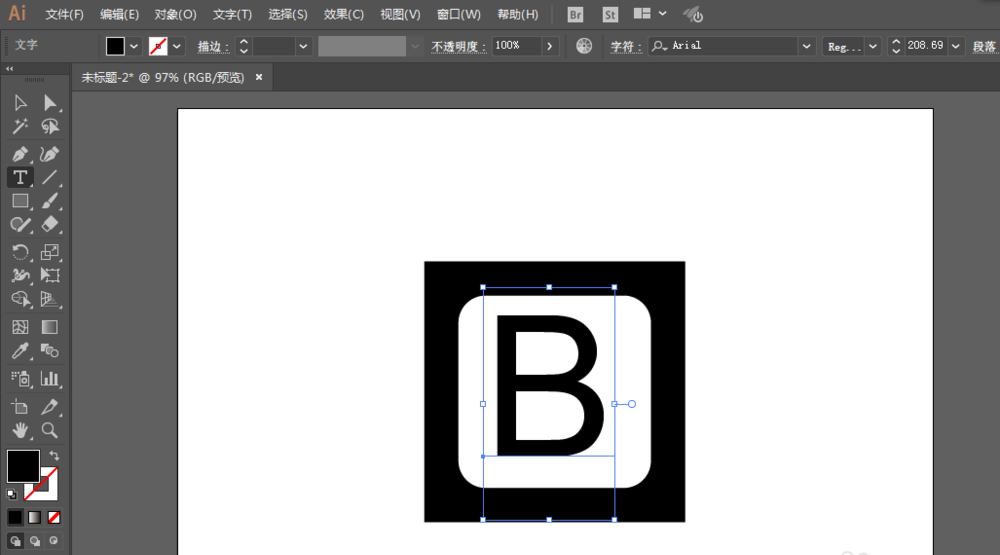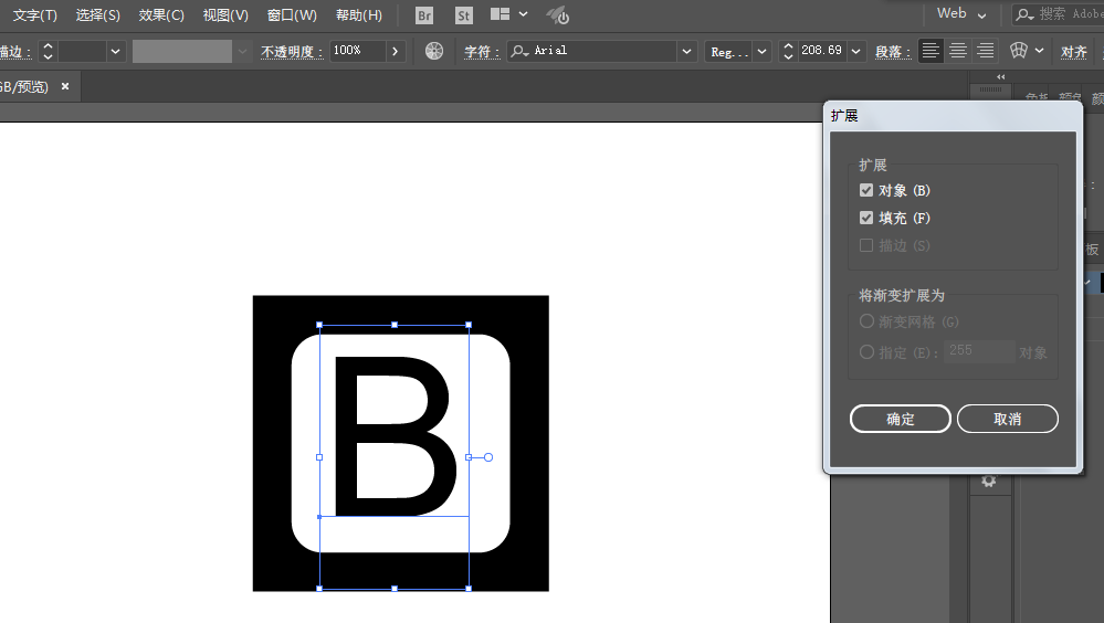 3、用文字工具写出自己要写的字母,进行对象扩展。添加进入符号。