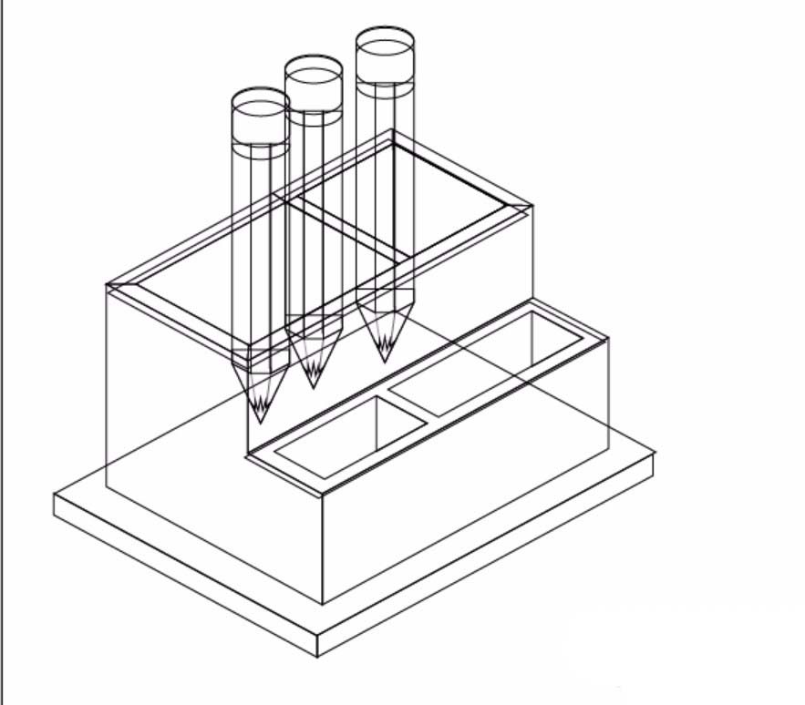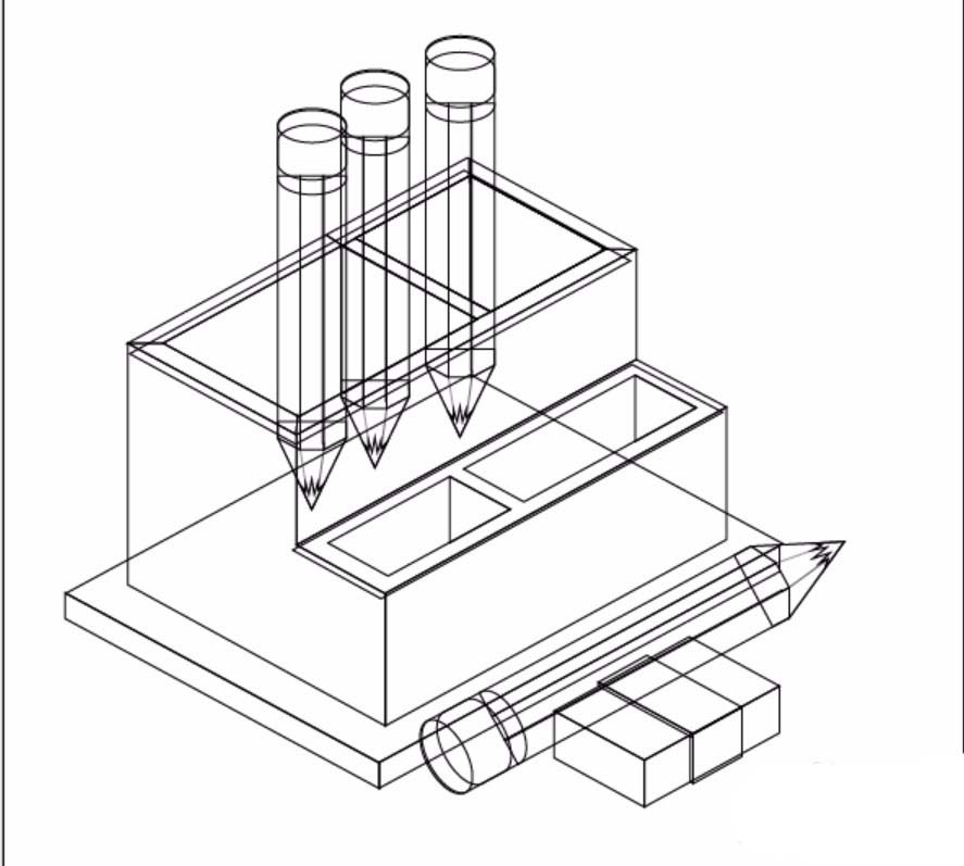 1、使用钢笔画出一个四边形的文具盒支架路径。
