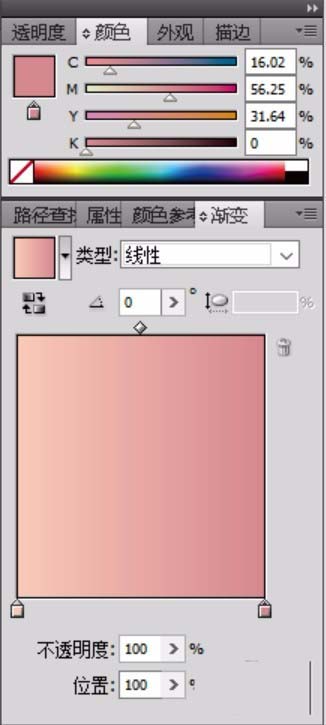 7、使用粉红色的渐变填充铅笔的橡皮头,使用灰白色的渐变填充铅笔的橡皮头与木材质相交的地方,使用不同的粉色、蓝色、橙色填充钢笔的主体侧面。