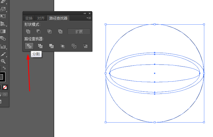 2、选中所有的圆形到窗口——路径查找器——点击分割,如图所示