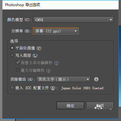 3、【平面化图层】就是保存的PSD文档打开后只有一个图层图片。【写入图层】就是可以保存成多个图层的,后期可以编辑。