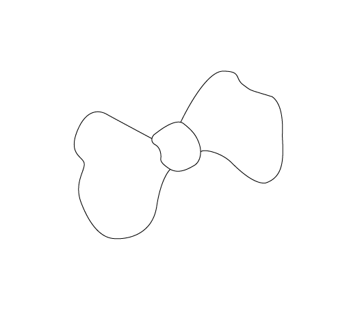4、在这个结的右侧画出蝴蝶结右侧的形状,如图所示:
