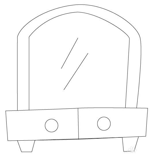 5、再在镜子的底面支架上画出镜子上面的把手,如图所示: