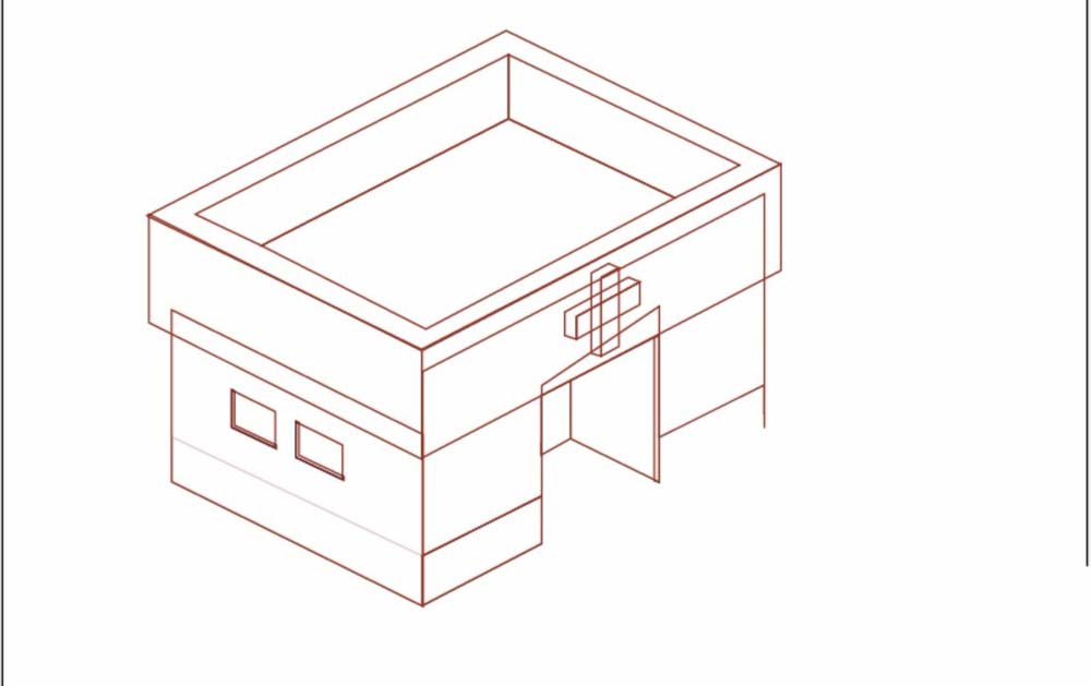 1、用钢笔绘制出医院房屋的基本轮廓,从屋顶到窗户到一一绘制出来。