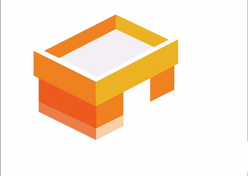 3、用橙黄色填充医院的屋顶侧面,用灰白色填充屋顶,用橙红色填充医院的下部墙壁,你淡粉色填充医院的地基部分。