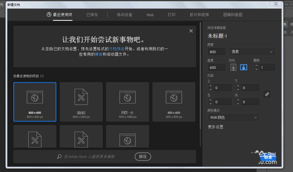 1、新建一个800*600PX的文件,颜色模式RGB。