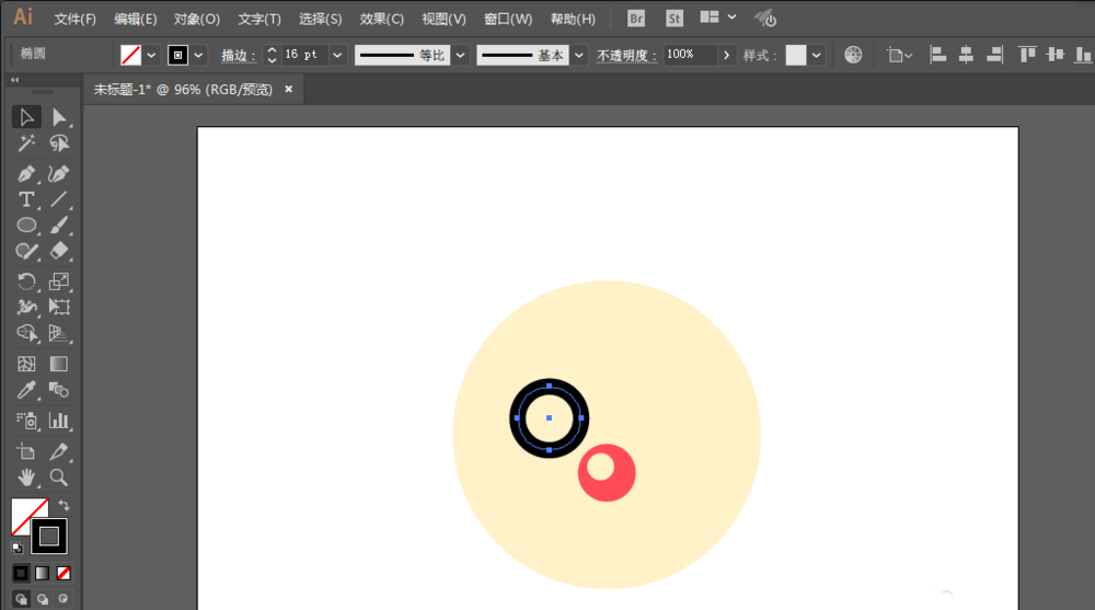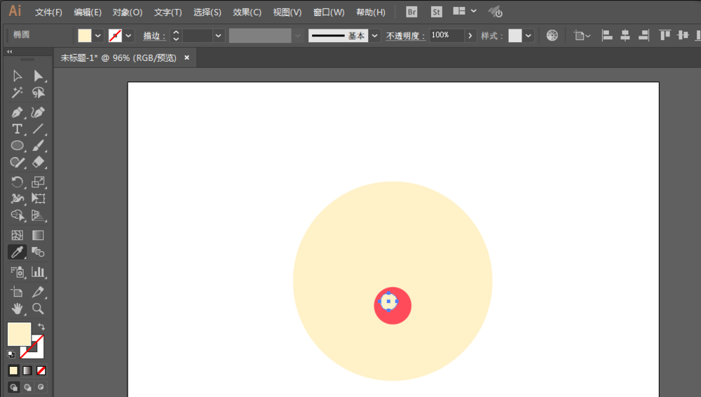 2、用椭圆工具绘制一个圆形,描边颜色不需要,填充颜色选择米黄色。