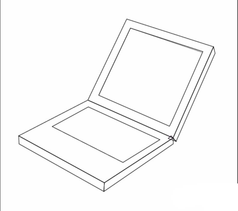 1、先画出笔记本电脑的上下两个框架图路径,把各个区域分隔好。
