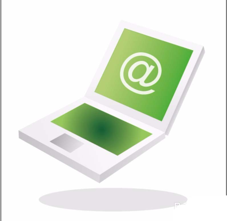 6、用绿色的渐变填充电脑的显示屏区域与键盘区域,显示屏上的图形用白色填充,电脑卡通图片简笔设计完成。
