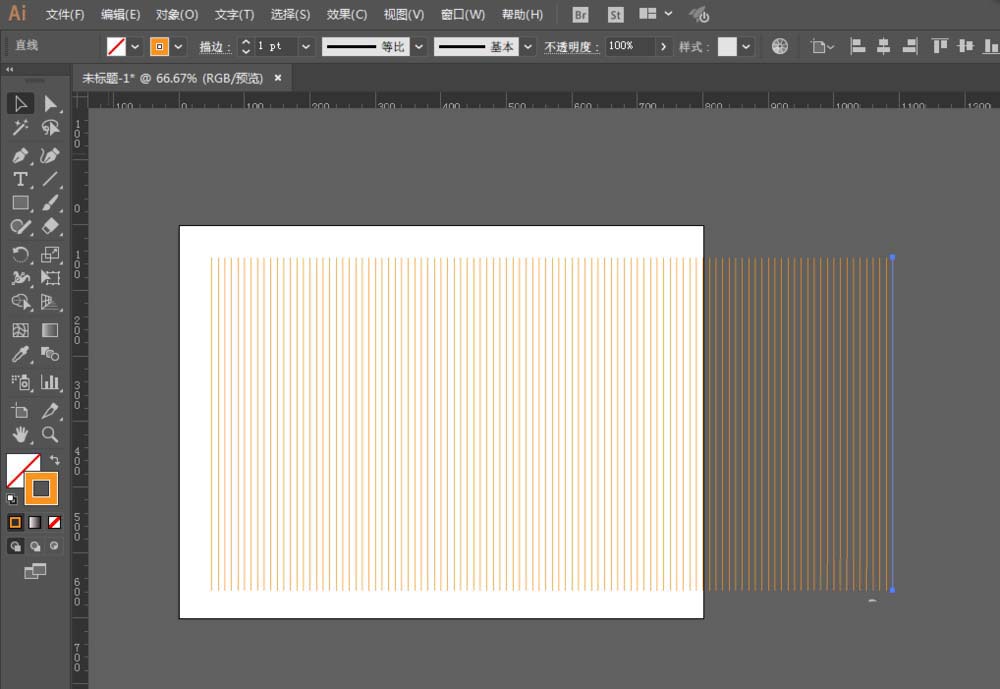 1、新建一个文件,用直线工具绘制一根直线,然后复制多根直线。