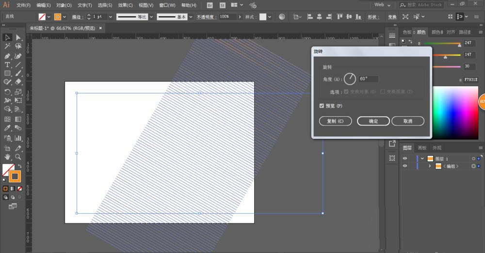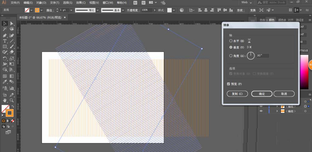2、旋转复制60度,镜像垂直复制一份,调整位置得到网格。
