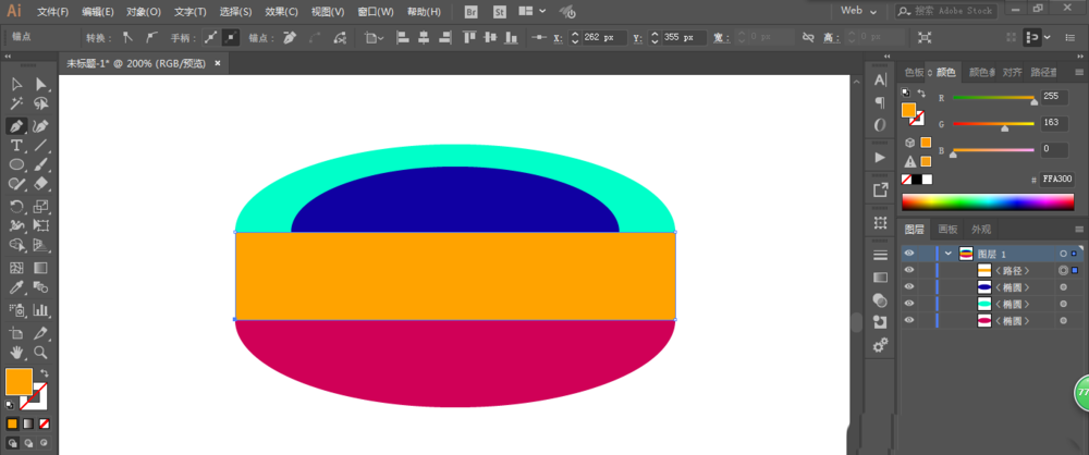3、复制一份大的椭圆形,用钢笔工具绘制一个长方形,两个形状进行联集。