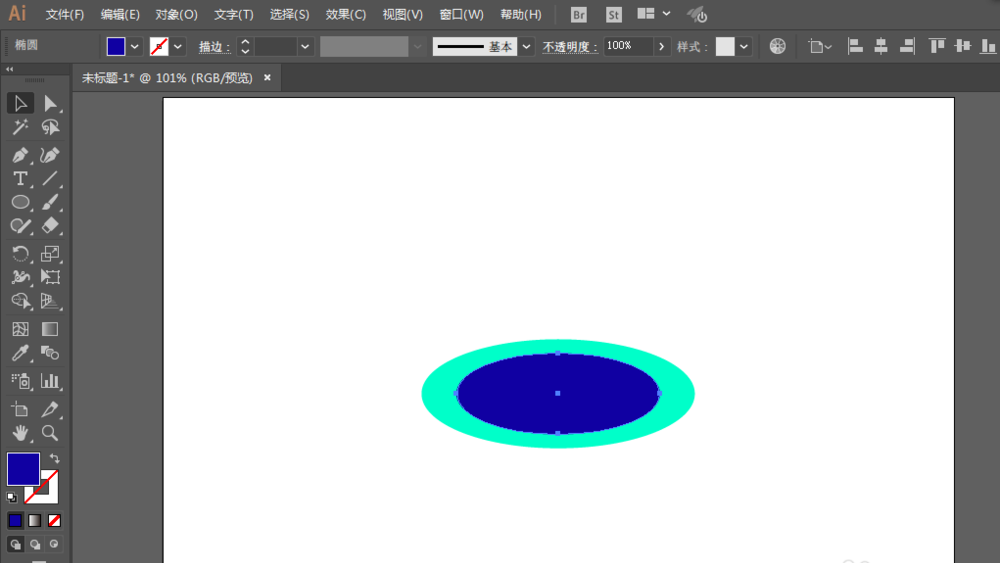 2、用椭圆工具绘制两个不同大小的椭圆形,填充不同颜色。