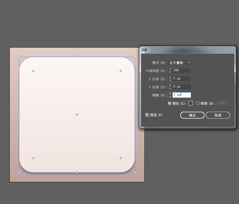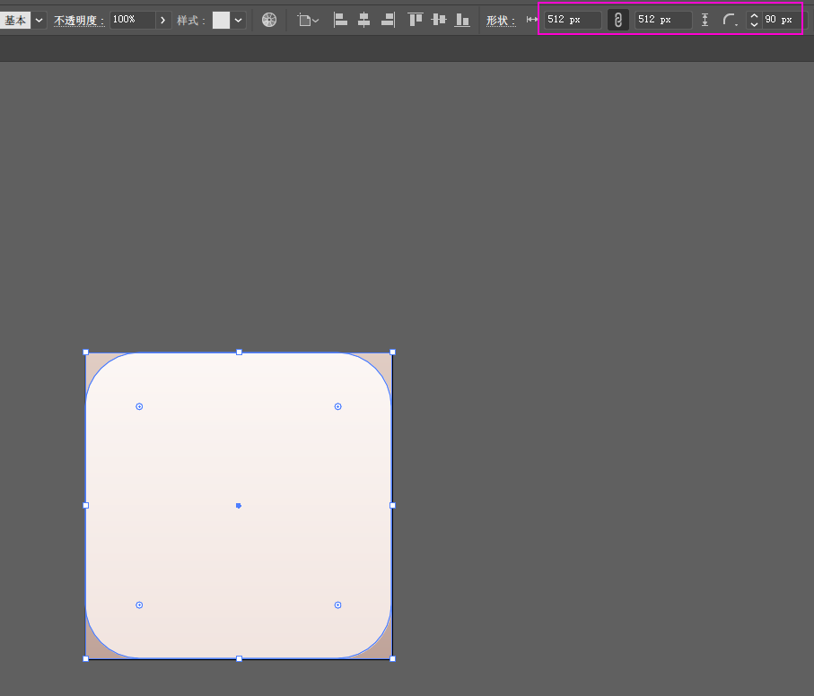 2、为了确保iOS的效果,新建一个512×512,圆角半径为90的圆角矩形,填充浅一些的渐变