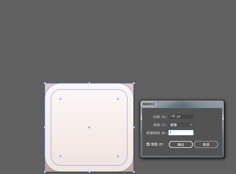 4、删除底层,通过偏移路径得到的缩小的圆角矩形可以比直接缩放圆角半径得到更好的效果。