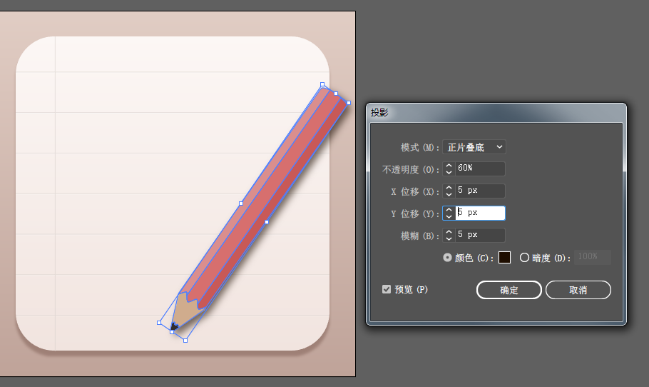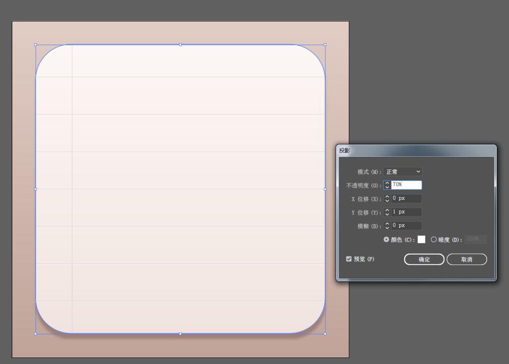 8、现在来给底纹增加一点凹陷效果,选中线条之后,【效果】-【投影】,调整参数值。