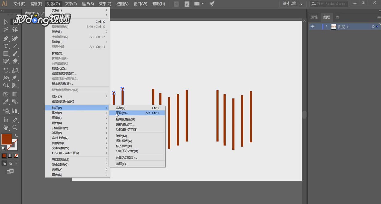 4、点击菜单栏中的“对象”-“路径”-“平均”