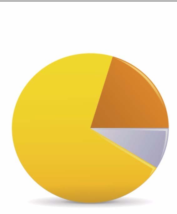 7、我们在灰色的圆弧块上面也画出一个小小的亮区路径并填充为白色,完成卡通饼状图设计。