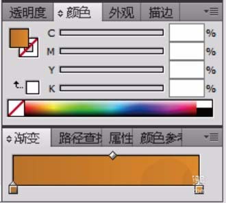 2、调出一个橙黄色的渐变,我们填充这个圆弧块。