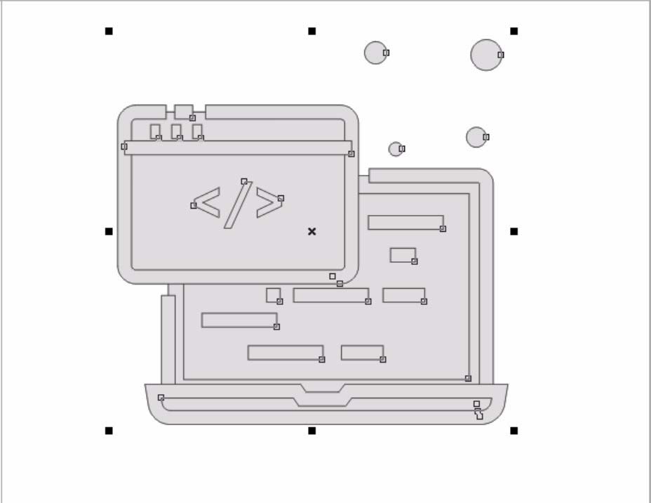 6、用冰蓝色填充显示里面的代码内容路径,还有周围的修饰小圆形的路径。
