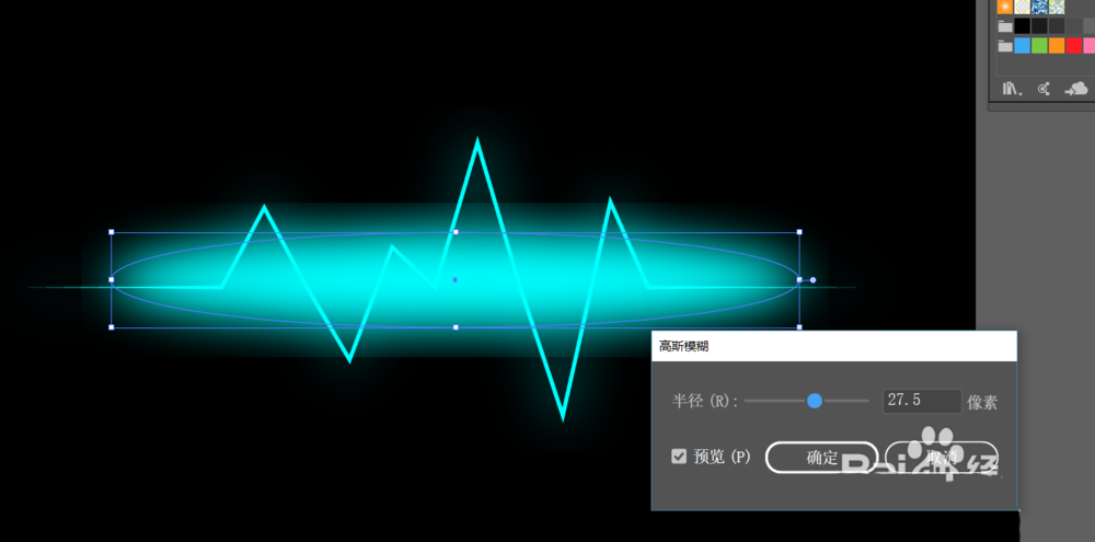 8、只是心电图的模糊还不够,我们用【椭圆工具】画一个椭圆,也添加一个高斯模糊