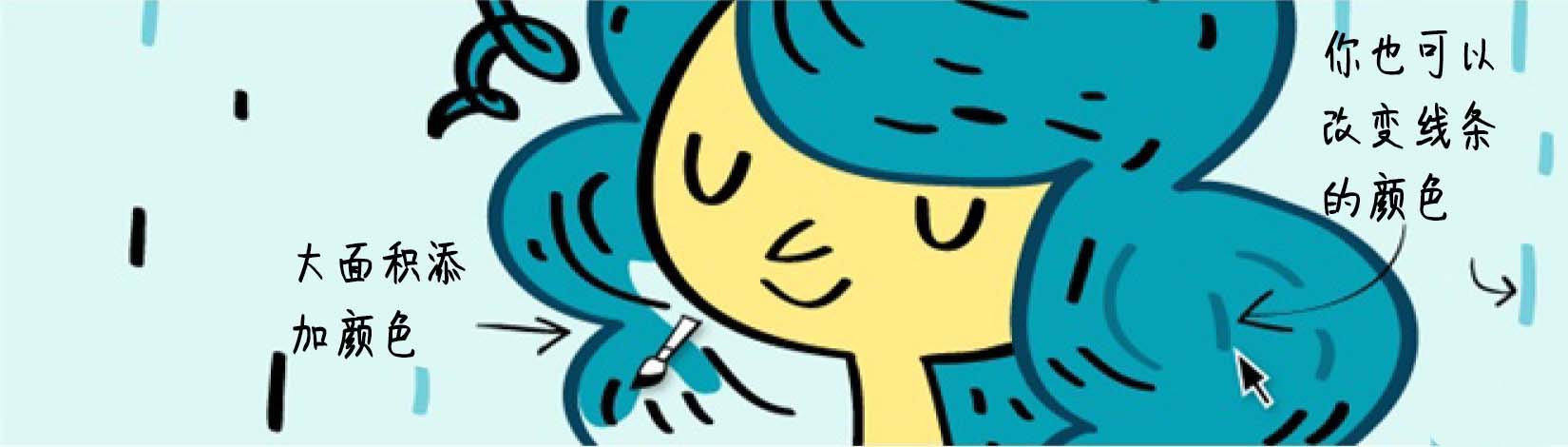 你可以用画笔工具给作品上色,使用不同的笔触会产生不同的肌理效果。或者你也可以用铅笔工具画出形状,进行大范围的平铺上色,这是一种教高效的方法。