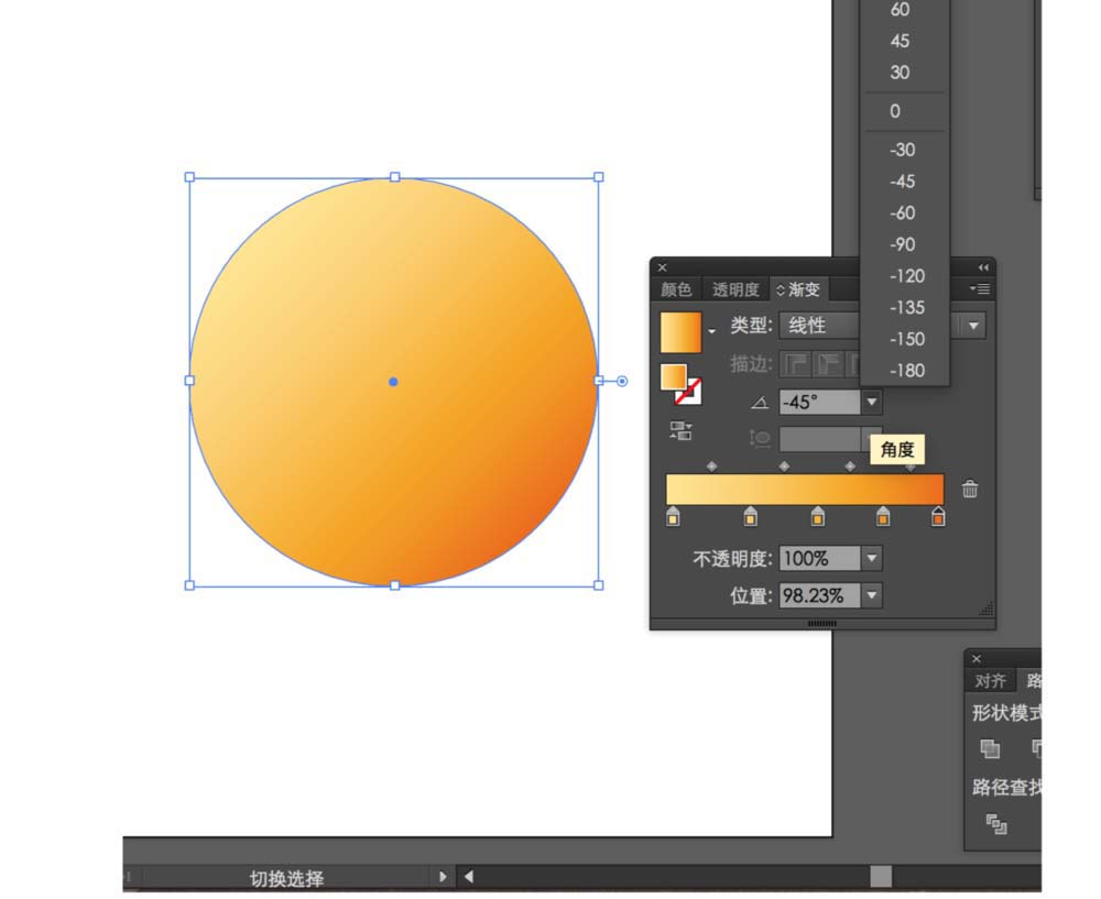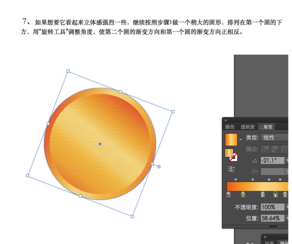 9、用“旋转工具”调整角度,使第二个圆的渐变方向和第一个圆的渐变方向正相反