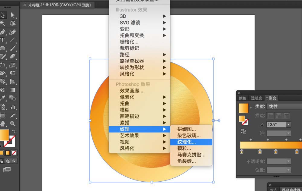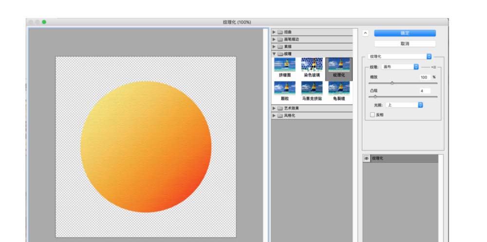 7、进入“纹理化”页面,给圆形做一个质感(如果喜欢光滑质感的可以跳过这个步骤)