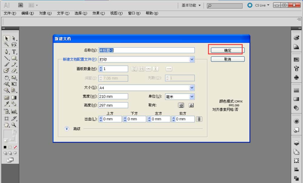 4、进入新建文件对话框,一般都不用修改数值,直接点击确定就可以了。